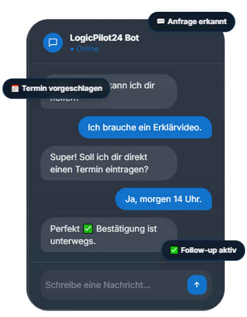 Kundenservice rund um die Uhr. Sofortige Antworten, automatische Terminbuchung, kein Lead geht verloren.